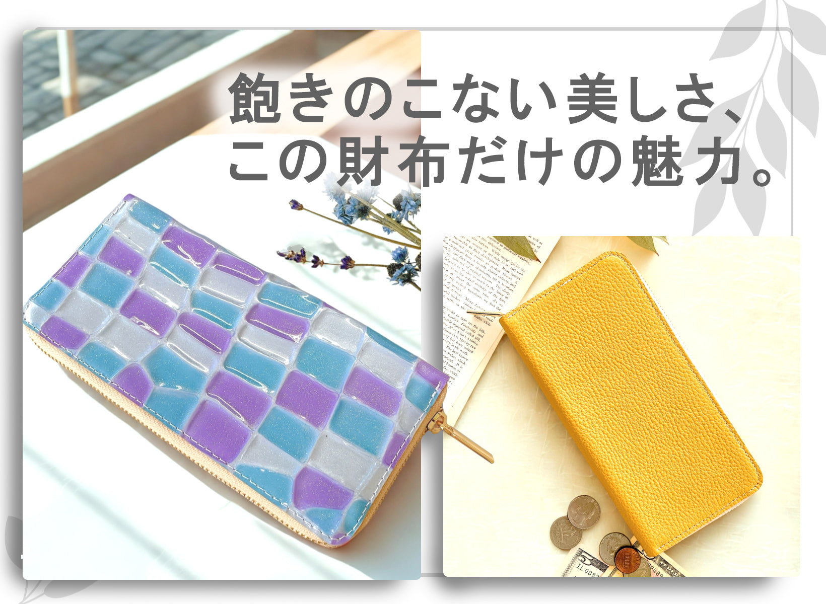 【Leo&Aoi公式ショップ】上品なステンドグラス 蛇腹 シンプル財布 ラウンド型ファスナー レディース ミニ財布 カード入れ エナメル 本革 財布 牛革 【安心の返品保証付き】