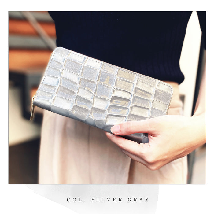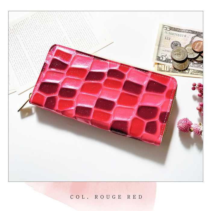 ラメの入った、エナメル加工を施した本革生地を使用しております。