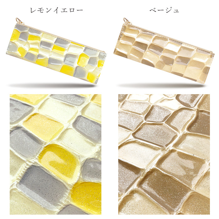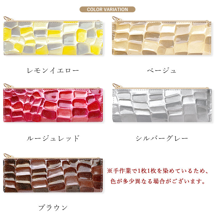 ラメの入った、エナメル加工を施した本革生地を使用。