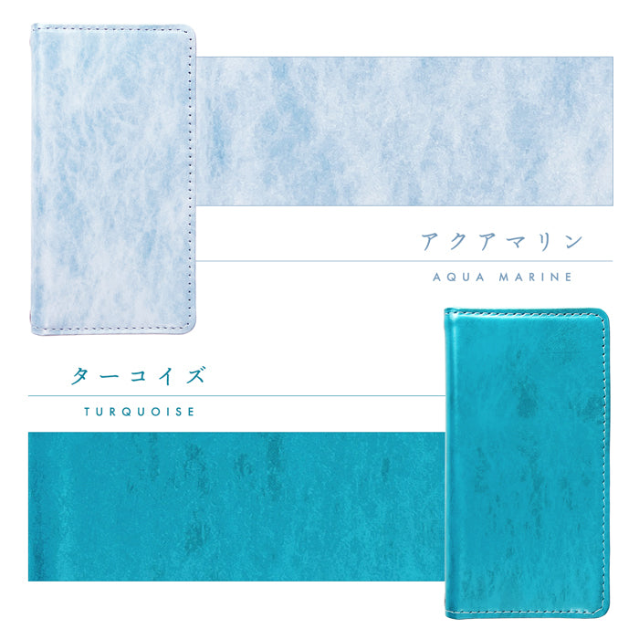 大理石のような模様と、パールのような光沢感が魅力の本革手帳型ケース。