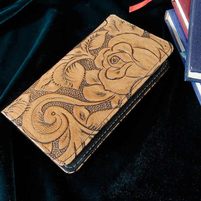 アンティークな雰囲気の薔薇が美しい本革生地を使用。