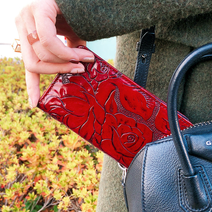 アンティークな雰囲気の薔薇が美しい本革生地を使用。