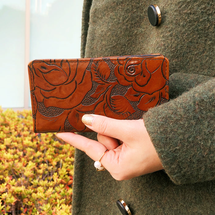 アンティークな雰囲気の薔薇が美しい本革生地を使用。