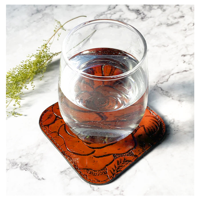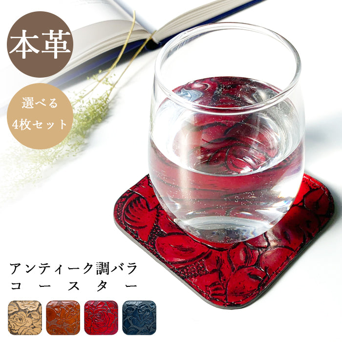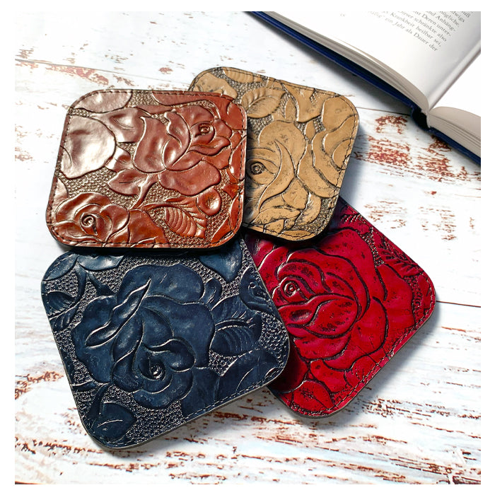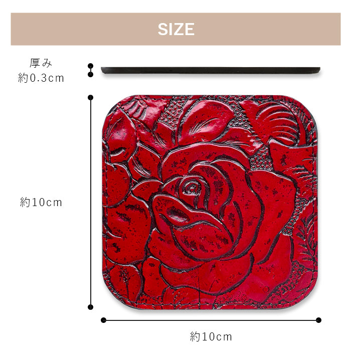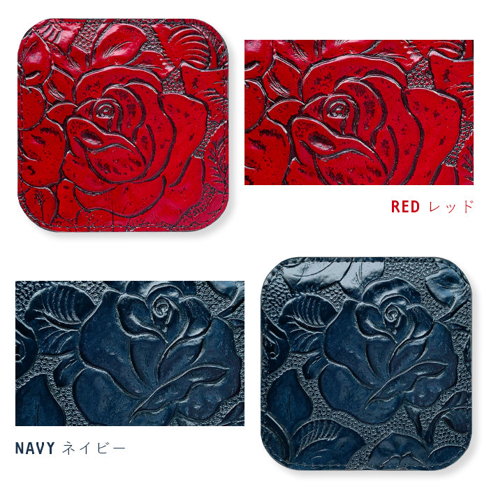 アンティークな雰囲気のバラが型押しされた本革を使用。