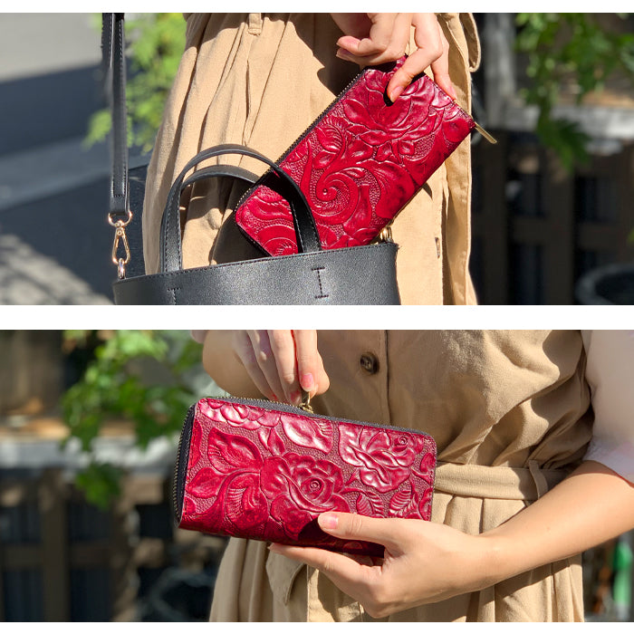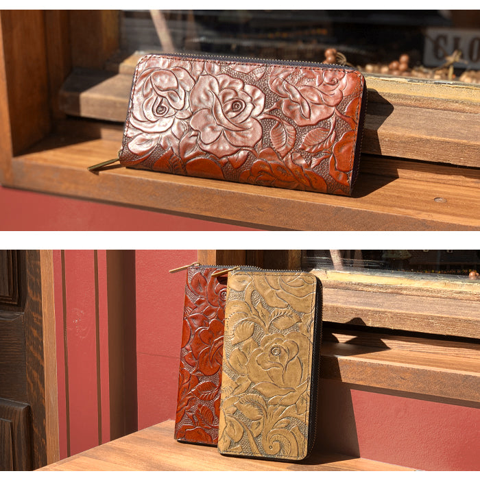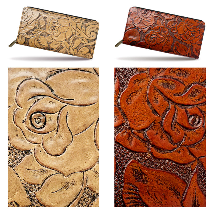 アンティークな雰囲気の薔薇が美しい本革生地を使用。