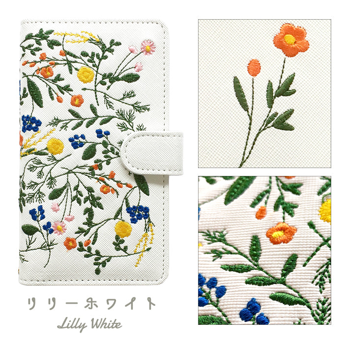 【 刺繍 花柄 フラワー ボタニカル柄 大人 かわいい レディース プレゼント 贈り物ケース カバー 手帳型 手帳 手帳型ケース 手帳型カバー スマホケース スマホカバー 】