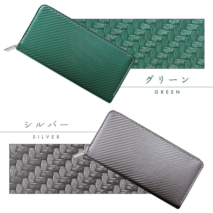 シックな色味で高級感のあるカーボンファイバー調生地と抜群の機能性を兼ね備えた 蛇腹カードポケット付きの長財布です。
