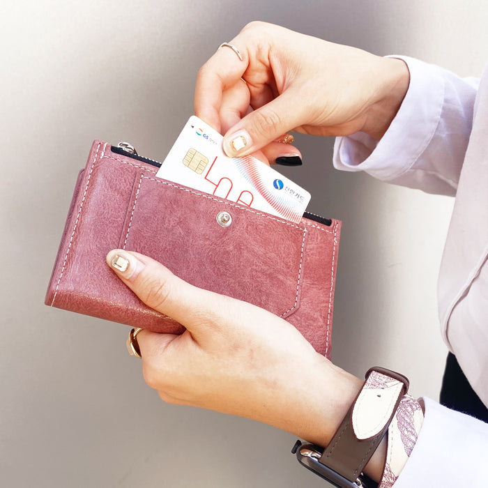 小銭や免許証、カード類などを収納出来るとても便利なファスナー付きの手帳型ケースです。