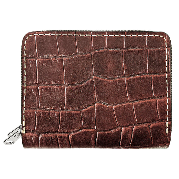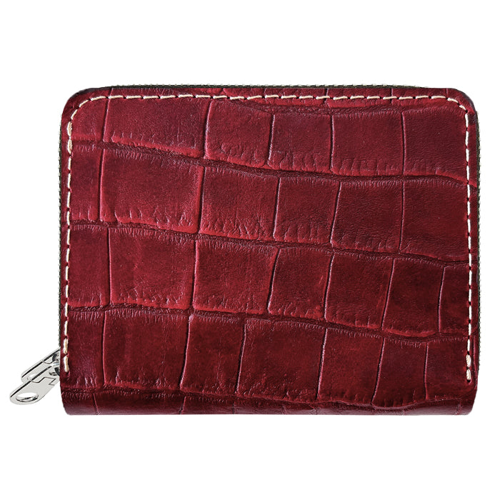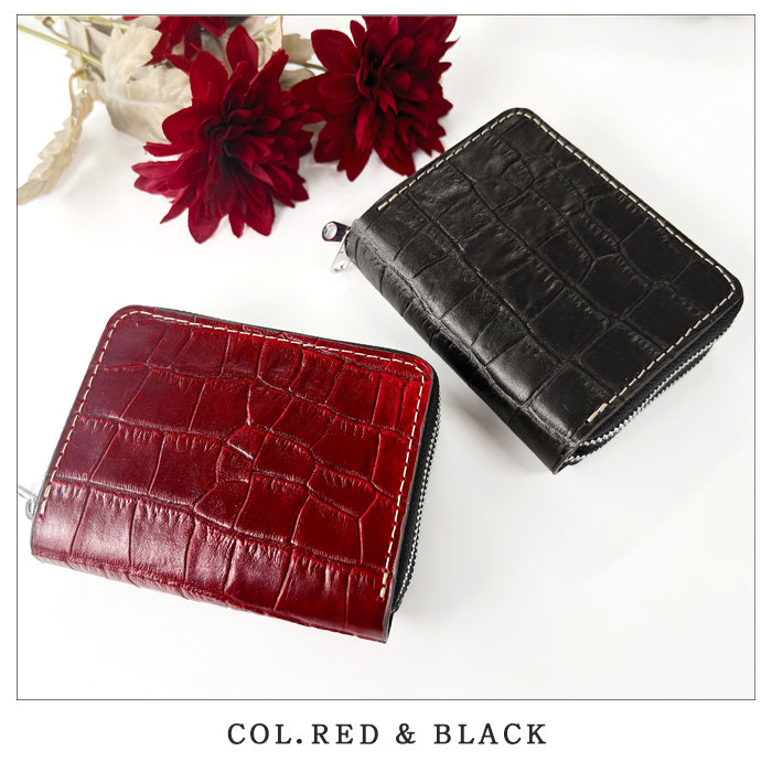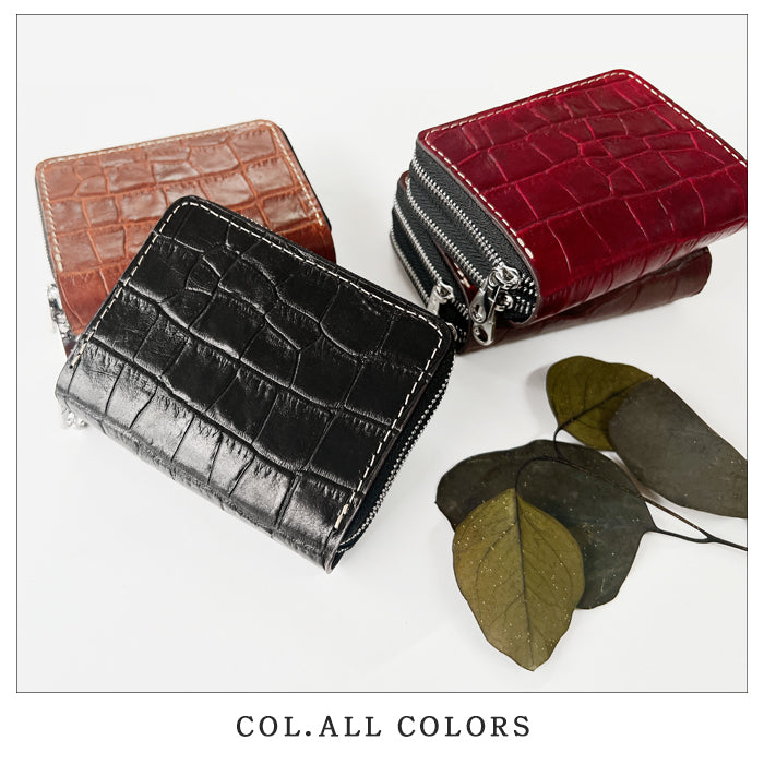 【Leo&Aoi公式ショップ】 クロコダイル 型押し 蛇腹 ダブルファスナー ラウンド型財布 本革 カード収納 小さい財布 牛革 革財布 Wファスナー 【安心の返品保証付き】