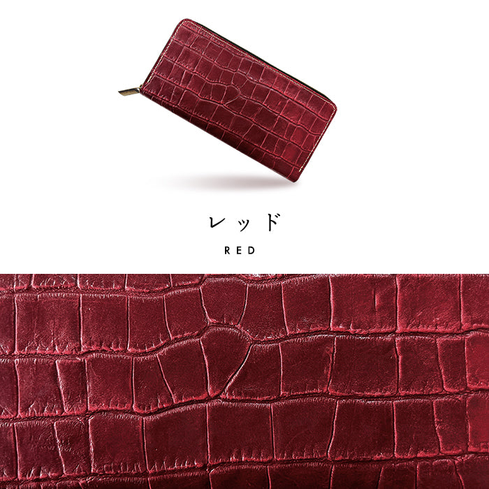 ◆ 本革 クロコダイル型押し 蛇腹カードポケット付き 長財布 ◆