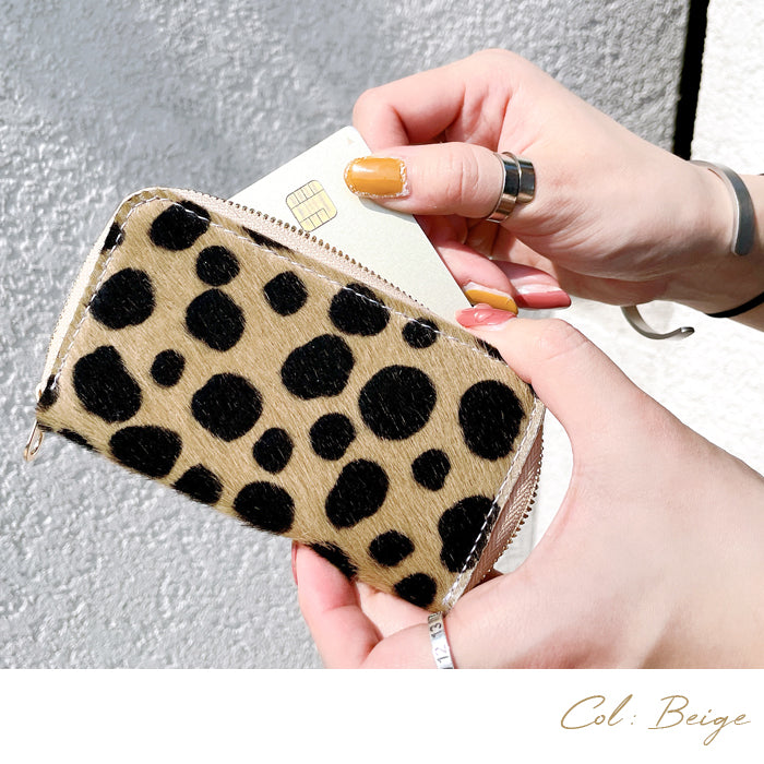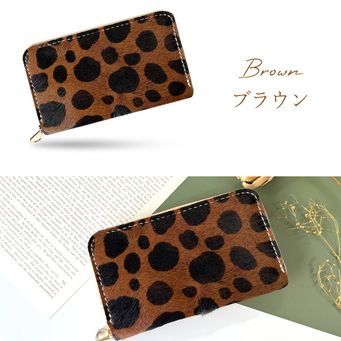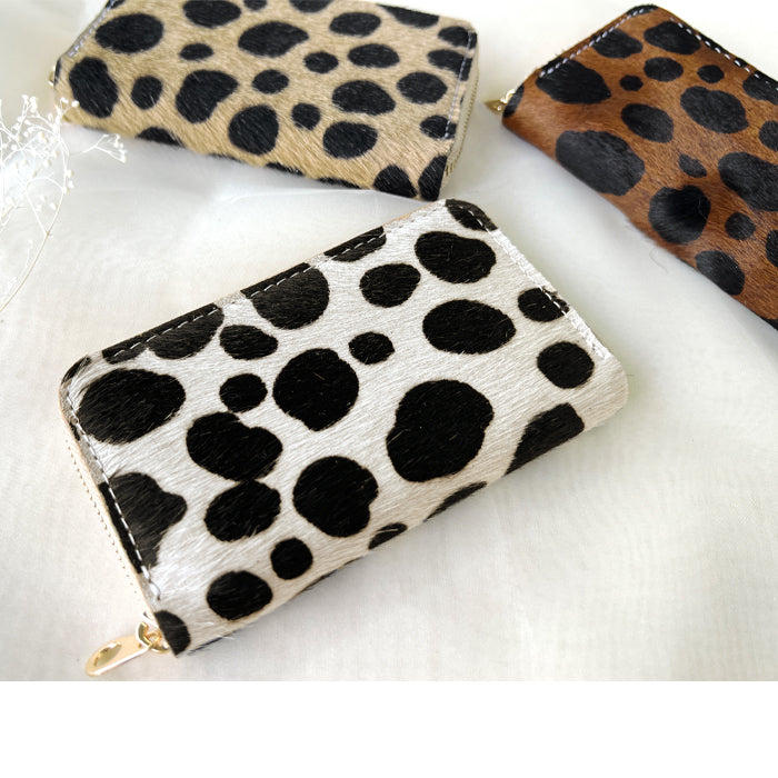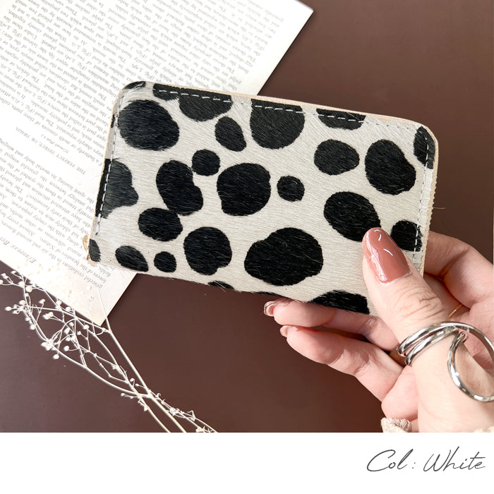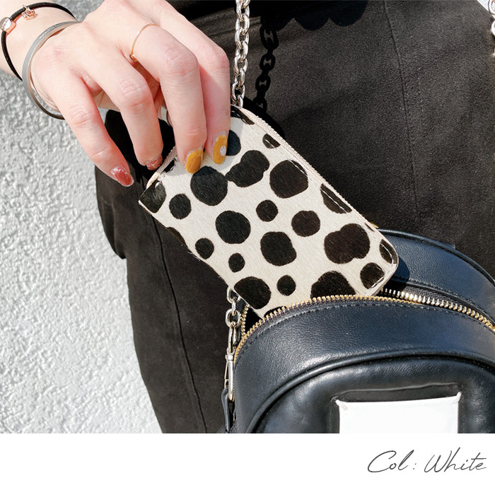 毛付き牛革にダルメシアン柄のプリントを施したハラコ風レザーを使用しております。