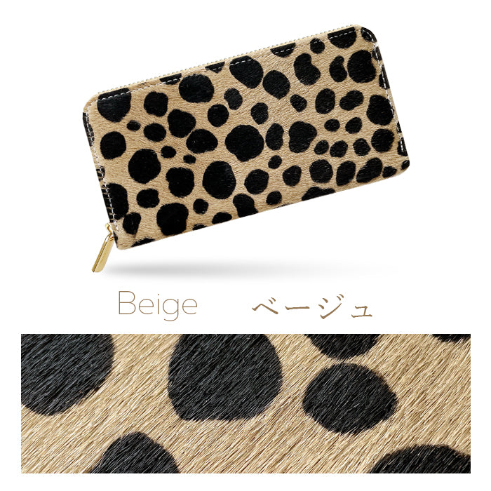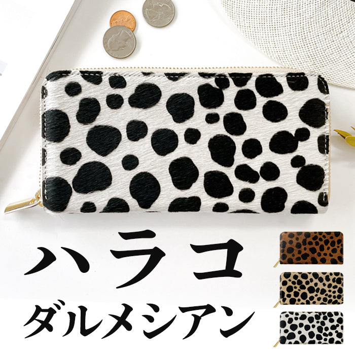 毛付き牛革にダルメシアン柄のプリントを施したハラコ風レザーを使用しております。