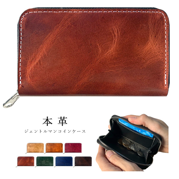 【Leo&Aoi公式ショップ】 ジェントルマン 本革 牛革 コインケース コンパクト ラウンドファスナー ポーチ 小型財布 小銭入れ シンプル 革 高級 ケース【安心の返品保証付き】