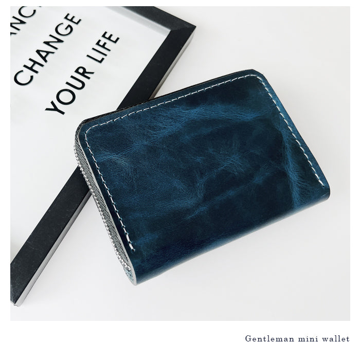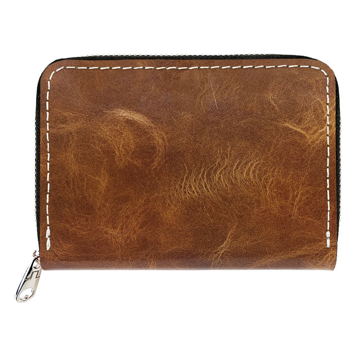 牛ヌメ革にワックスをかけ、絞り加工という技法で作製しております。