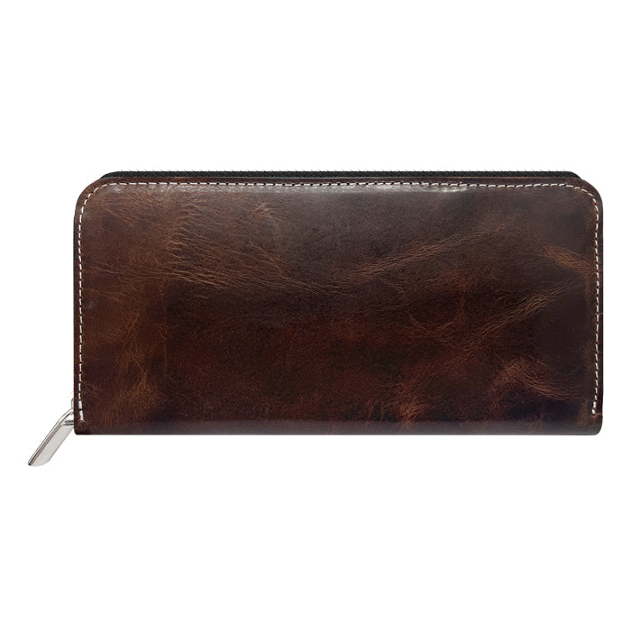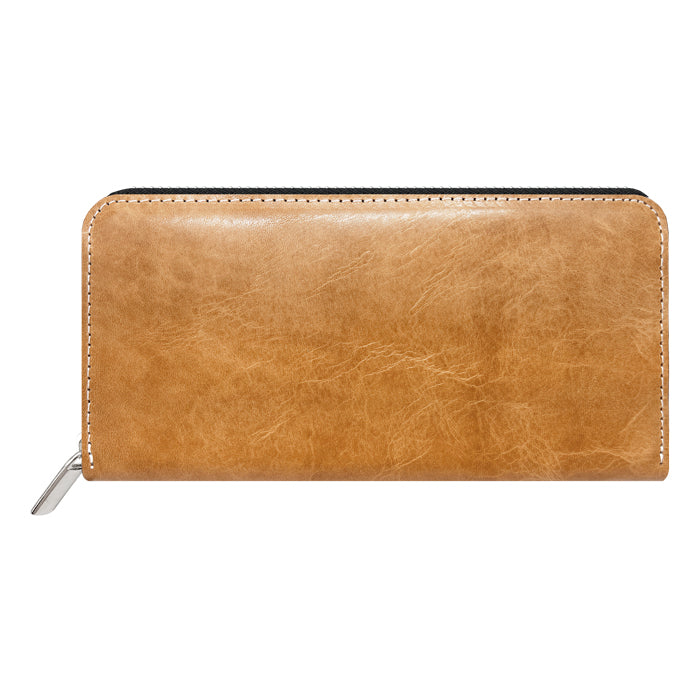 艶のある上品な牛ヌメ革を使用しております。 牛ヌメ革にワックスをかけ、絞り加工という技法で作製しております。