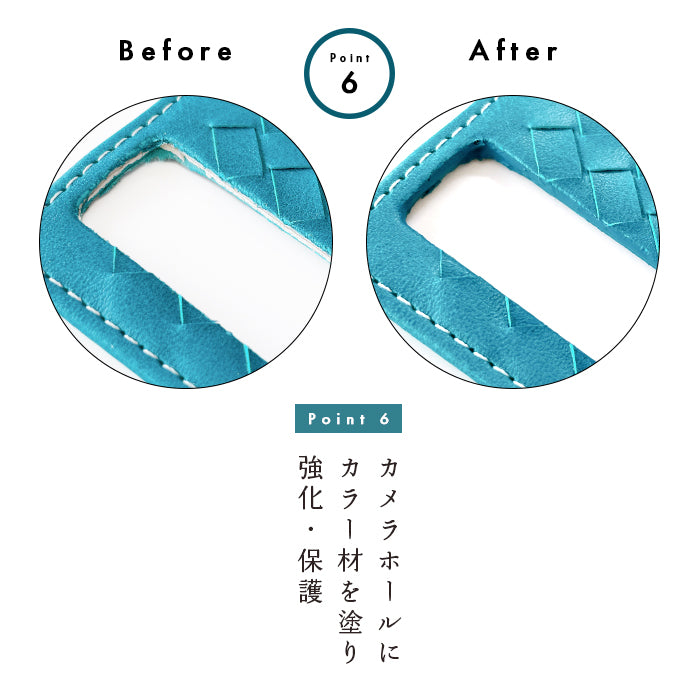 内側のケースに合わせてカメラ穴・フラッシュ穴等を一点一点、手作りであけております!