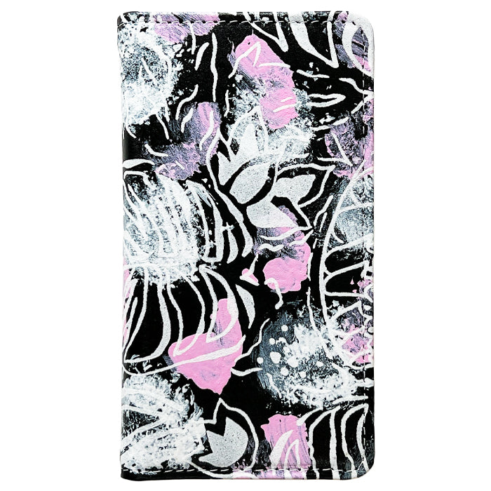 hawaiハワイの自然や文化にインスパイアされた、鮮やかなハワイアン柄の本革手帳型ケース。