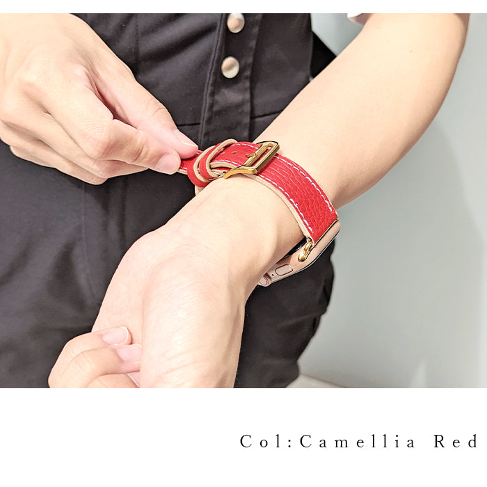 サイズとバックルのカラーも選べる、本革ちょっとハイソなアップルウォッチバンドです。