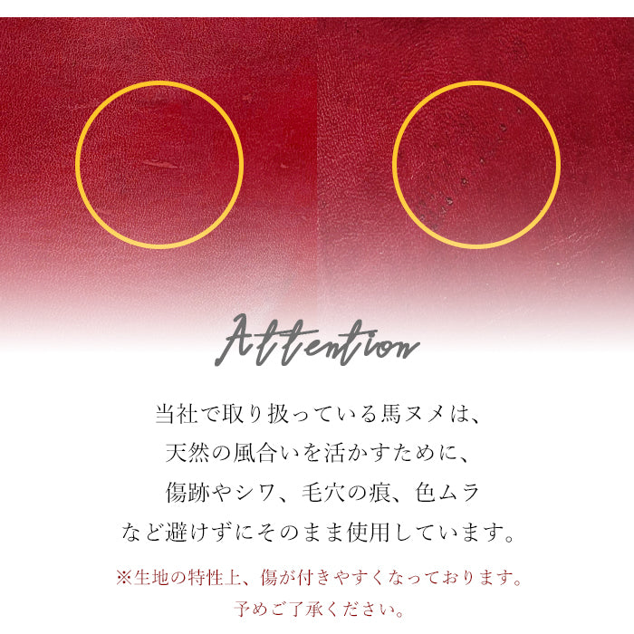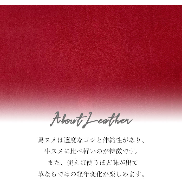 光沢感のある落ち着いた色合いの馬ヌメ革を使用しております。