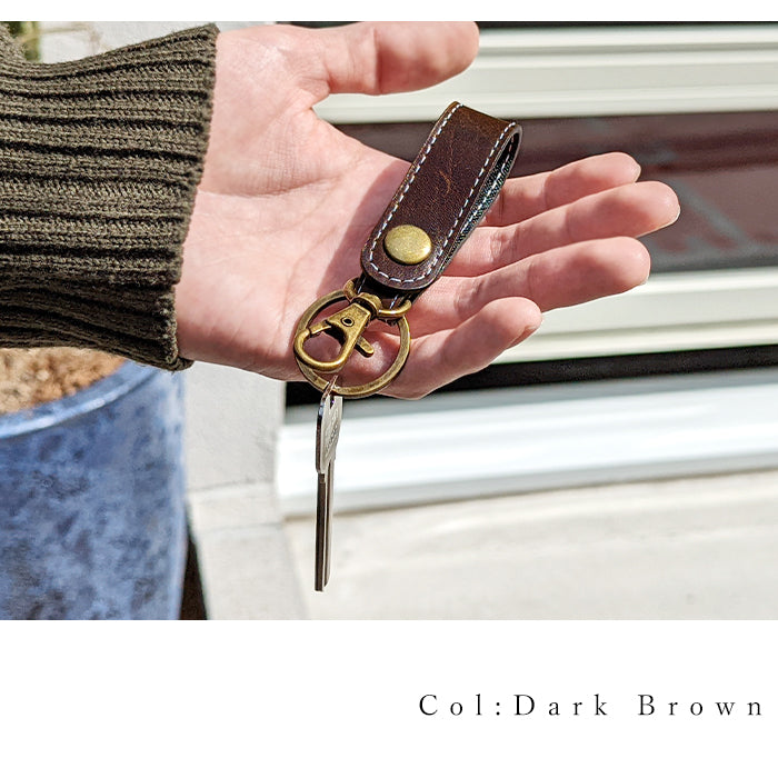 【Leo&Aoi公式ショップ】 馬革 キーリング スナップボタン キーホルダー バッグチャーム キーフック 馬ヌメ クラシック