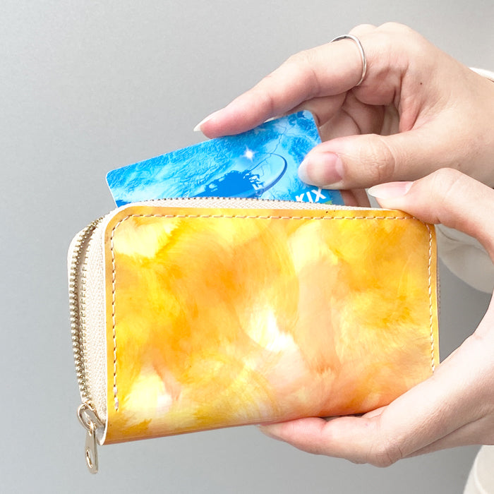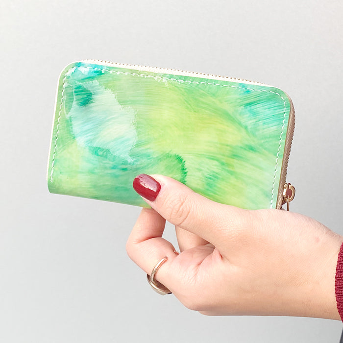 色鮮やかで水彩画のようなデザインのコインケースです。