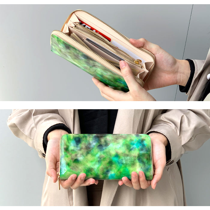 エナメル加工を施した光沢ある本革生地を使用しています。