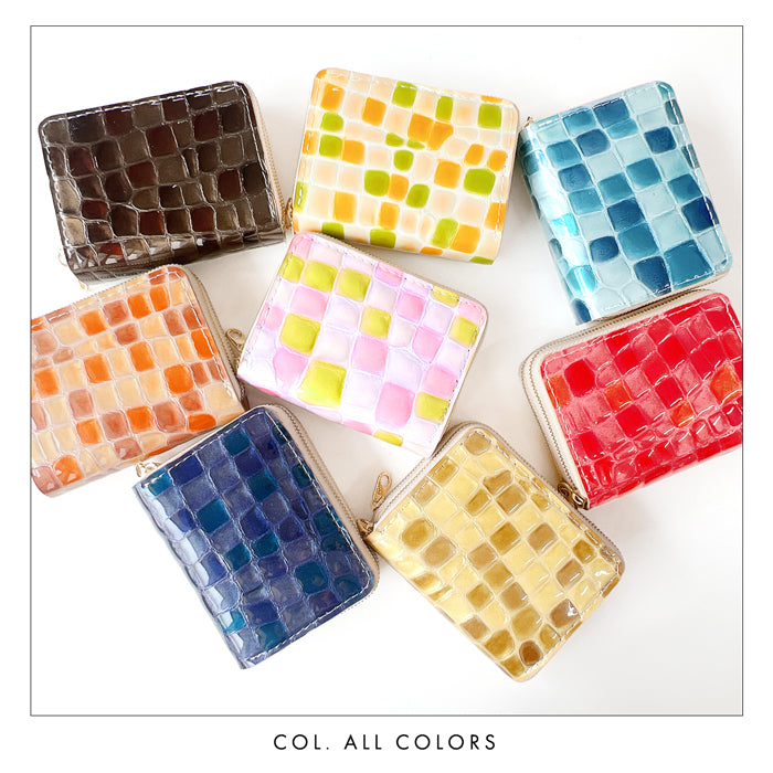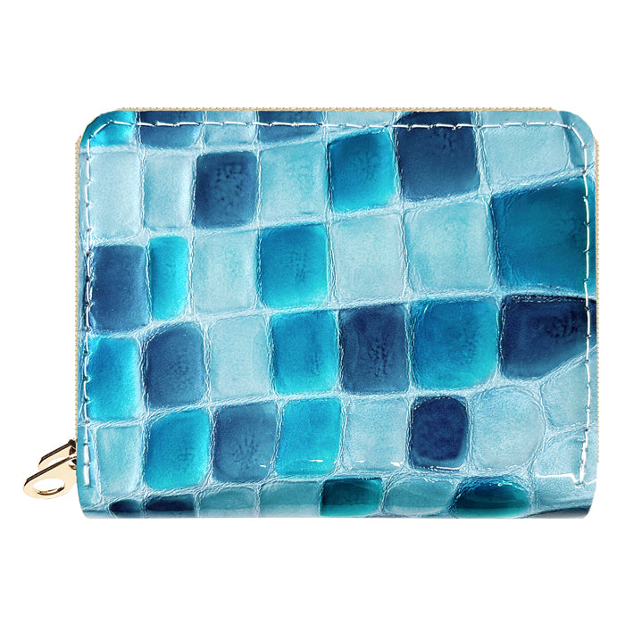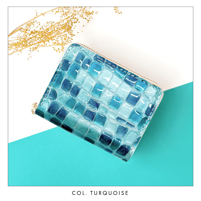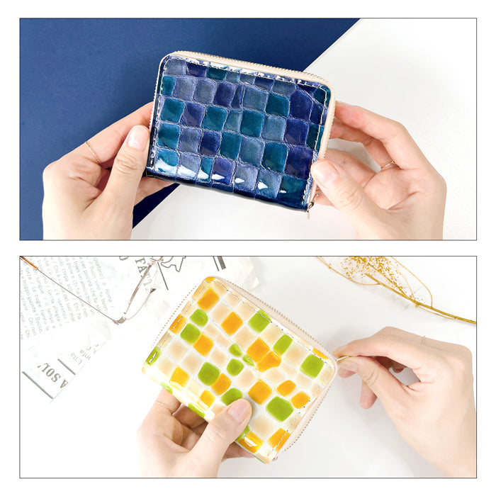 上品な華やぎ。 毎日に彩りを添える、機能的な本革財布。 鮮やかな色合いと、まるでステンドグラスのような輝きが目を引く本革素材を使用。 ダブルファスナー仕様で、仕切り付きのコインケースとじゃばら式カードポケットを搭載。 |