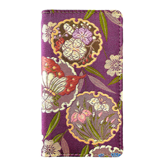 【 着物 織物 刺繍 上品 高級 華やか 豪華 和風 和柄 伝統 日本 JAPAN 二つ折り ハンドなし ケース カバー 手帳型 手帳 手帳型ケース 手帳型カバー スマホケース スマホカバー 】
