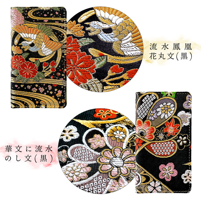 【 着物 織物 刺繍 上品 高級 華やか 豪華 和風 和柄 伝統 日本 JAPAN 二つ折り ハンドなし ケース カバー 手帳型 手帳 手帳型ケース 手帳型カバー スマホケース スマホカバー 】