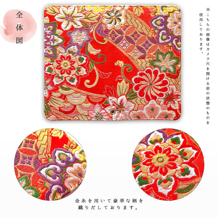 【 着物 織物 刺繍 上品 高級 華やか 豪華 和風 和柄 伝統 日本 JAPAN 二つ折り ハンドなし ケース カバー 手帳型 手帳 手帳型ケース 手帳型カバー スマホケース スマホカバー 】