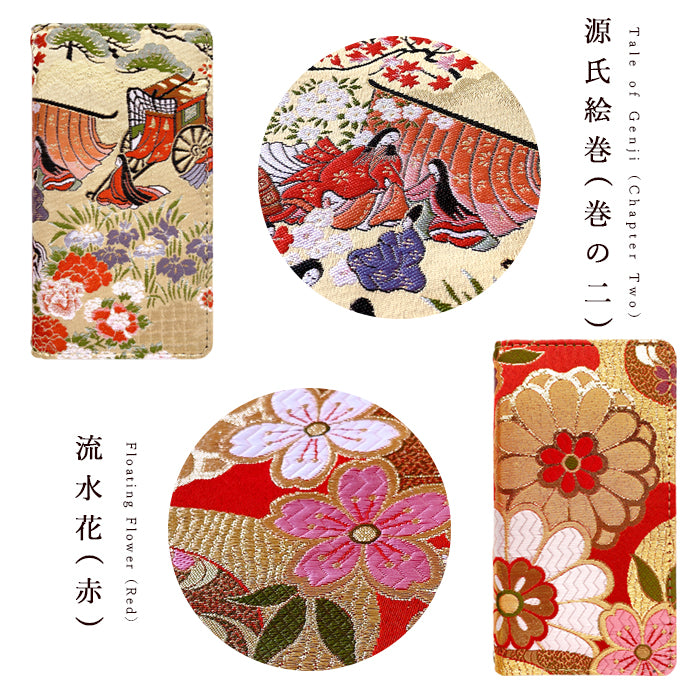 【 着物 織物 刺繍 上品 高級 華やか 豪華 和風 和柄 伝統 日本 JAPAN 二つ折り ハンドなし ケース カバー 手帳型 手帳 手帳型ケース 手帳型カバー スマホケース スマホカバー 】