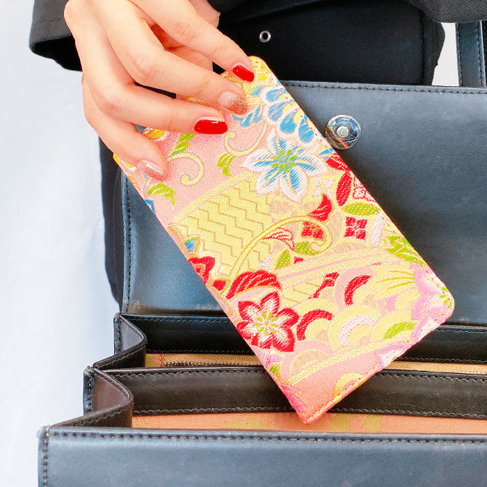 【 着物 織物 刺繍 上品 高級 華やか 豪華 和風 和柄 伝統 日本 JAPAN 二つ折り ハンドなし ケース カバー 手帳型 手帳 手帳型ケース 手帳型カバー スマホケース スマホカバー 】