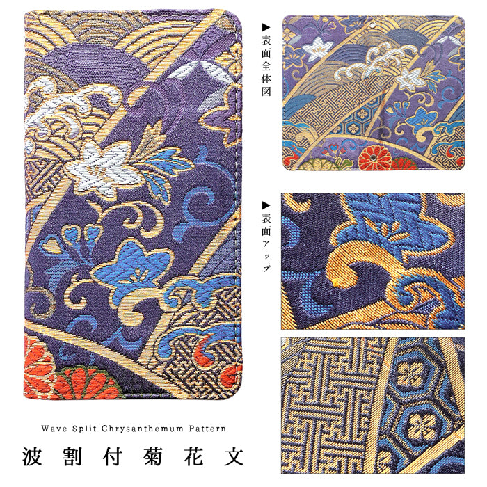 【 着物 織物 刺繍 上品 高級 華やか 豪華 和風 和柄 伝統 日本 JAPAN 二つ折り ハンドなし ケース カバー 手帳型 手帳 手帳型ケース 手帳型カバー スマホケース スマホカバー 】