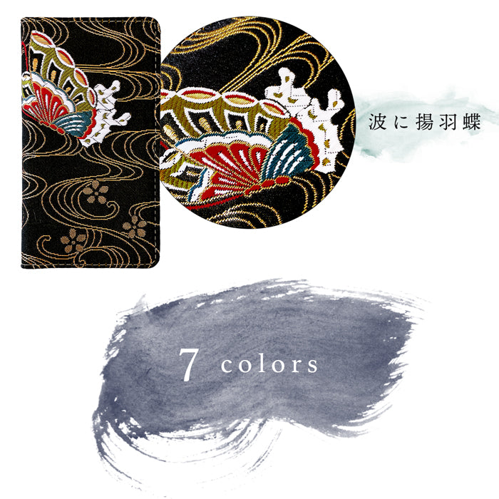 【 着物 織物 刺繍 上品 高級 華やか 豪華 和風 和柄 伝統 日本 JAPAN 二つ折り ハンドなし ケース カバー 手帳型 手帳 手帳型ケース 手帳型カバー スマホケース スマホカバー 】