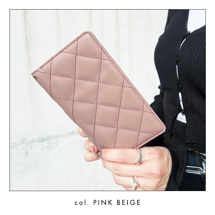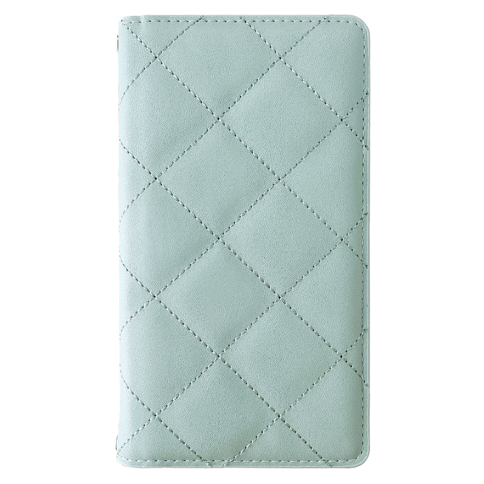 なめらかな手触りのPUレザーにキルティング加工を施した高級感ある手帳型ケースです。