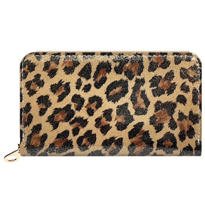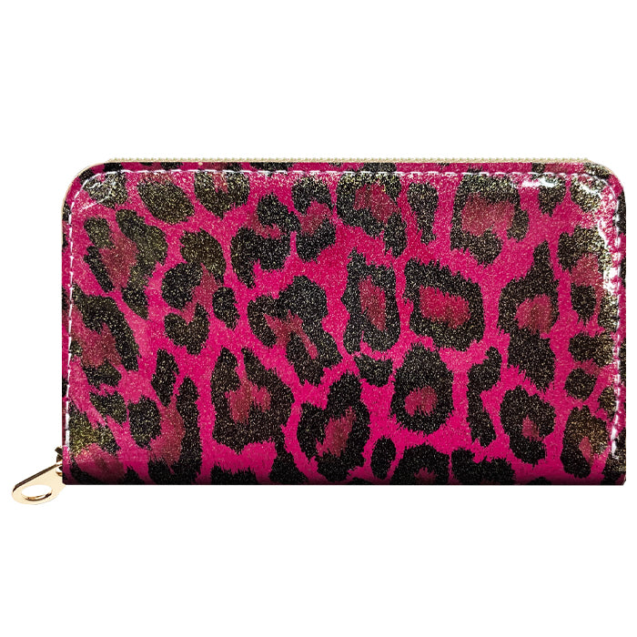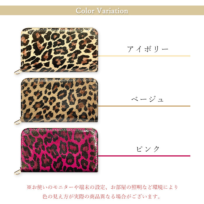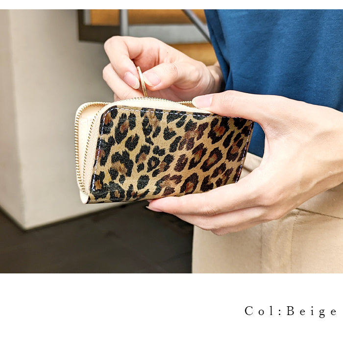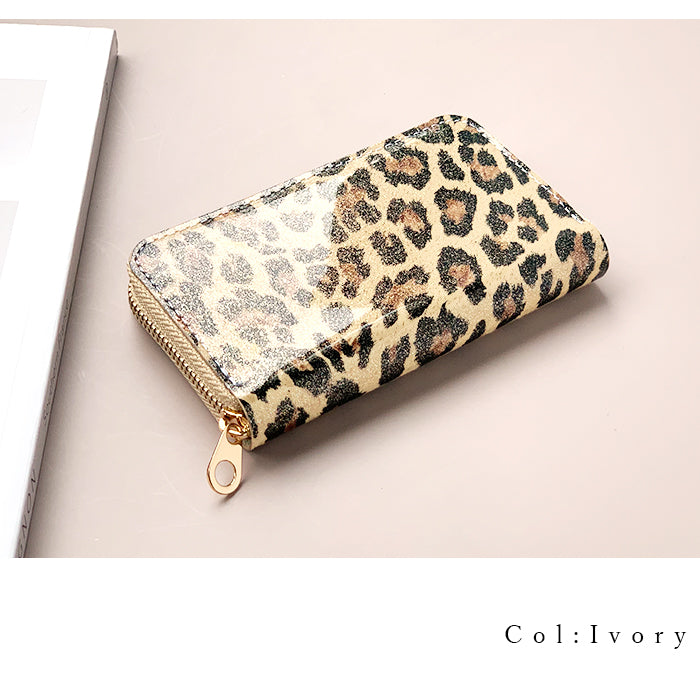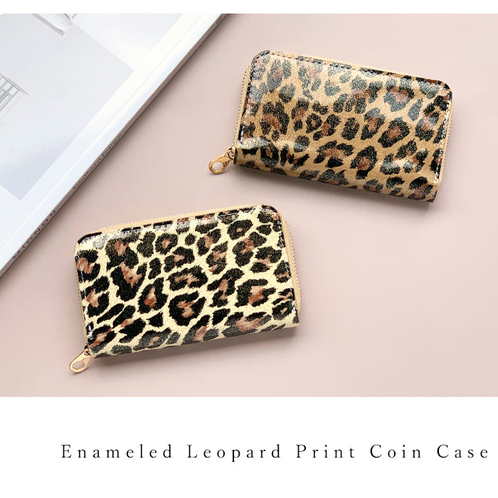 ヒョウ柄プリントのラメ入りのエナメル加工を施したきらびやかなカーフレザーを使用しております。