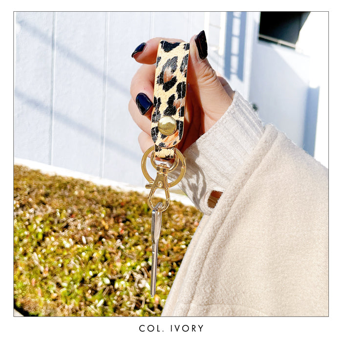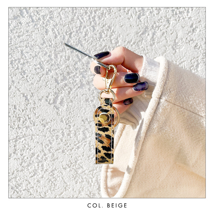 【Leo&Aoi公式ショップ】 本革 キーリング スナップボタン キーホルダー バッグチャーム ヒョウ柄 エナメル 【安心の返品保証付き】