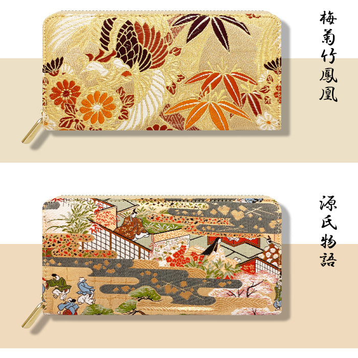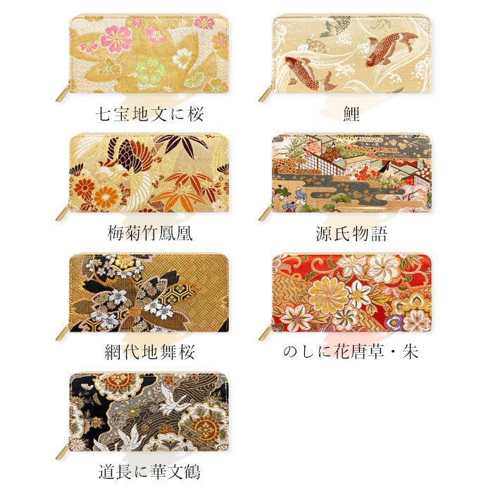 【Leo&Aoi公式ショップ】 西陣織 松 長財布 カード収納 レディース ラウンドファスナー 財布 金襴 和風 和柄 サイフ さいふ ウォレット ラウンド長財布 ラウンド財布 長サイフ 和 豪華 織物 鳳凰 桜 鯉 源氏物語 花唐草 鶴 七宝地文 女性 ハンドメイド【安心の返品保証付き】