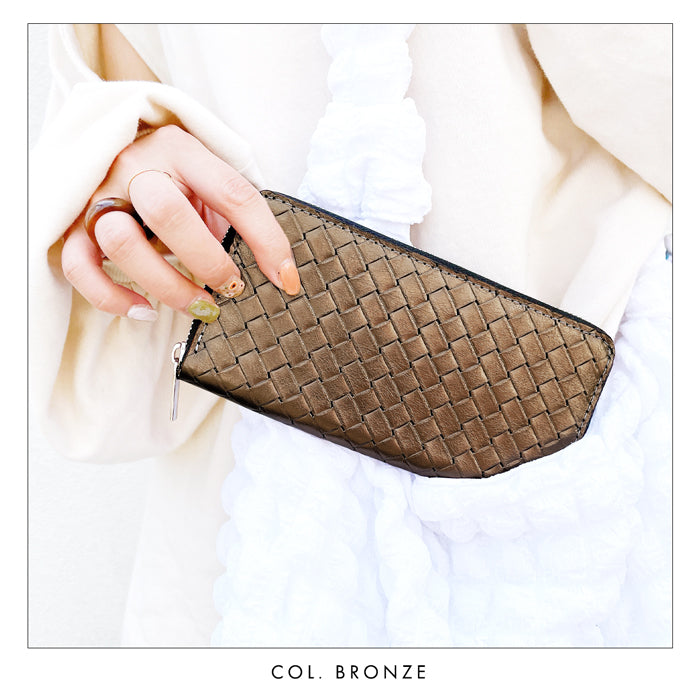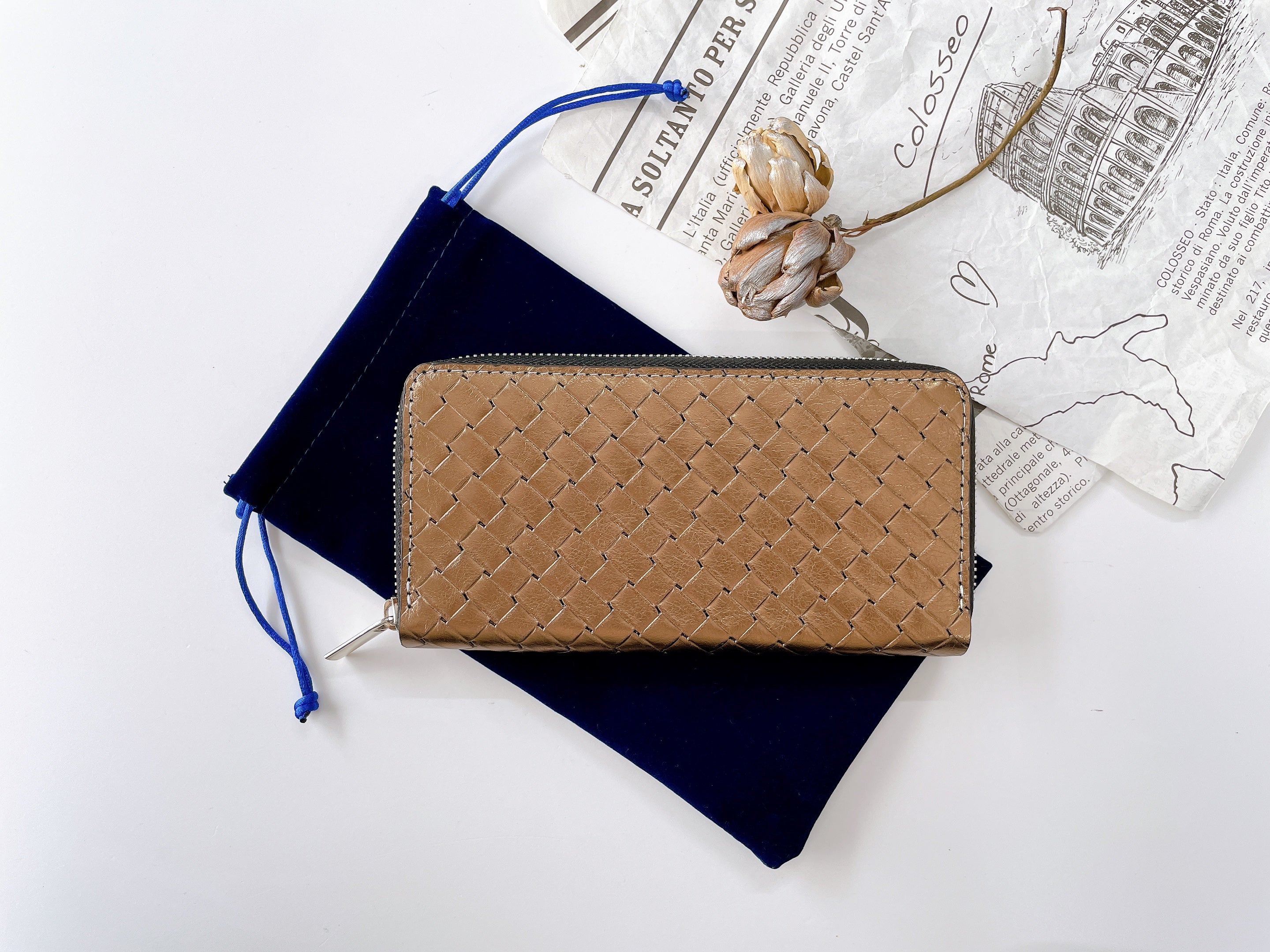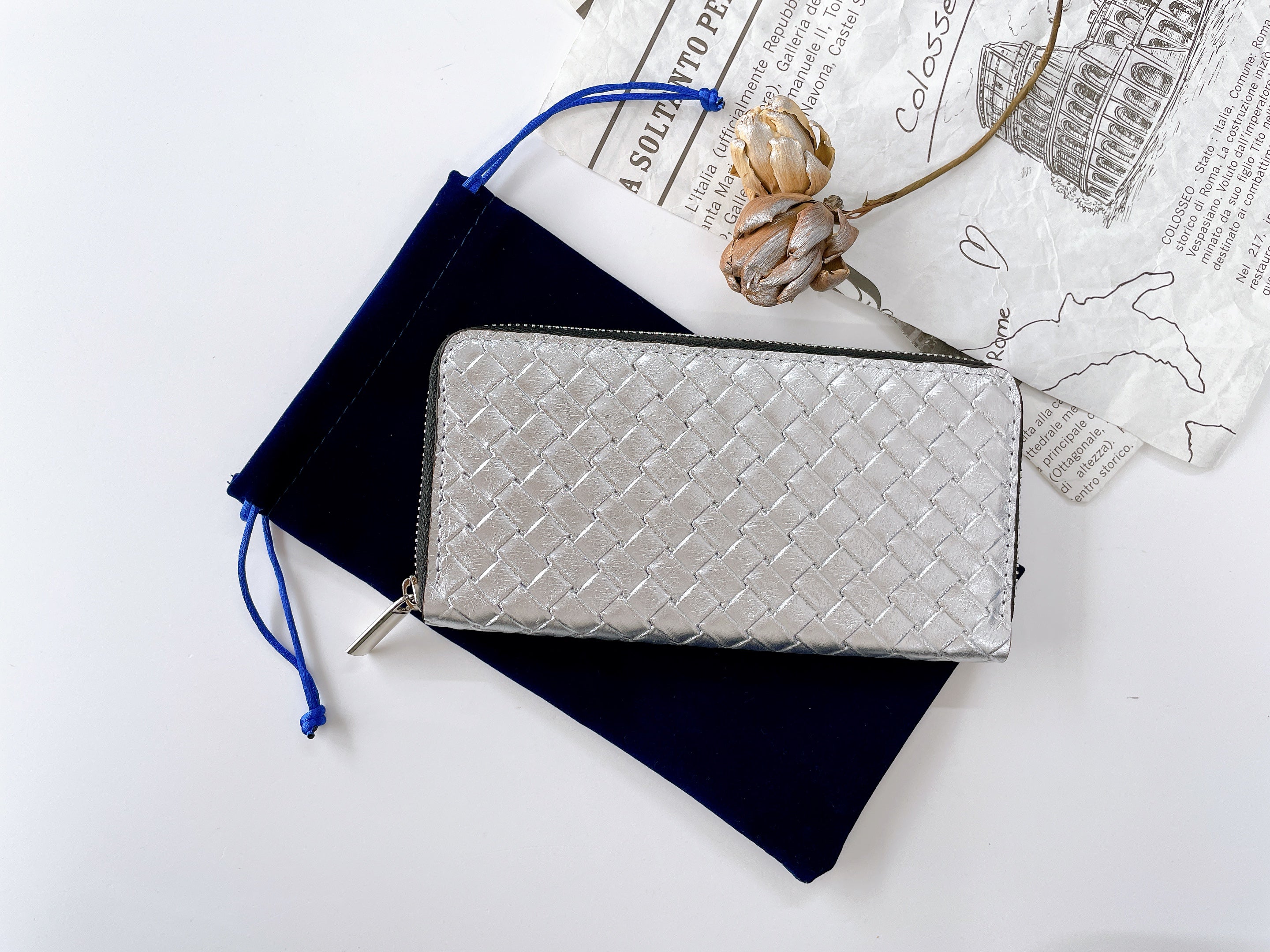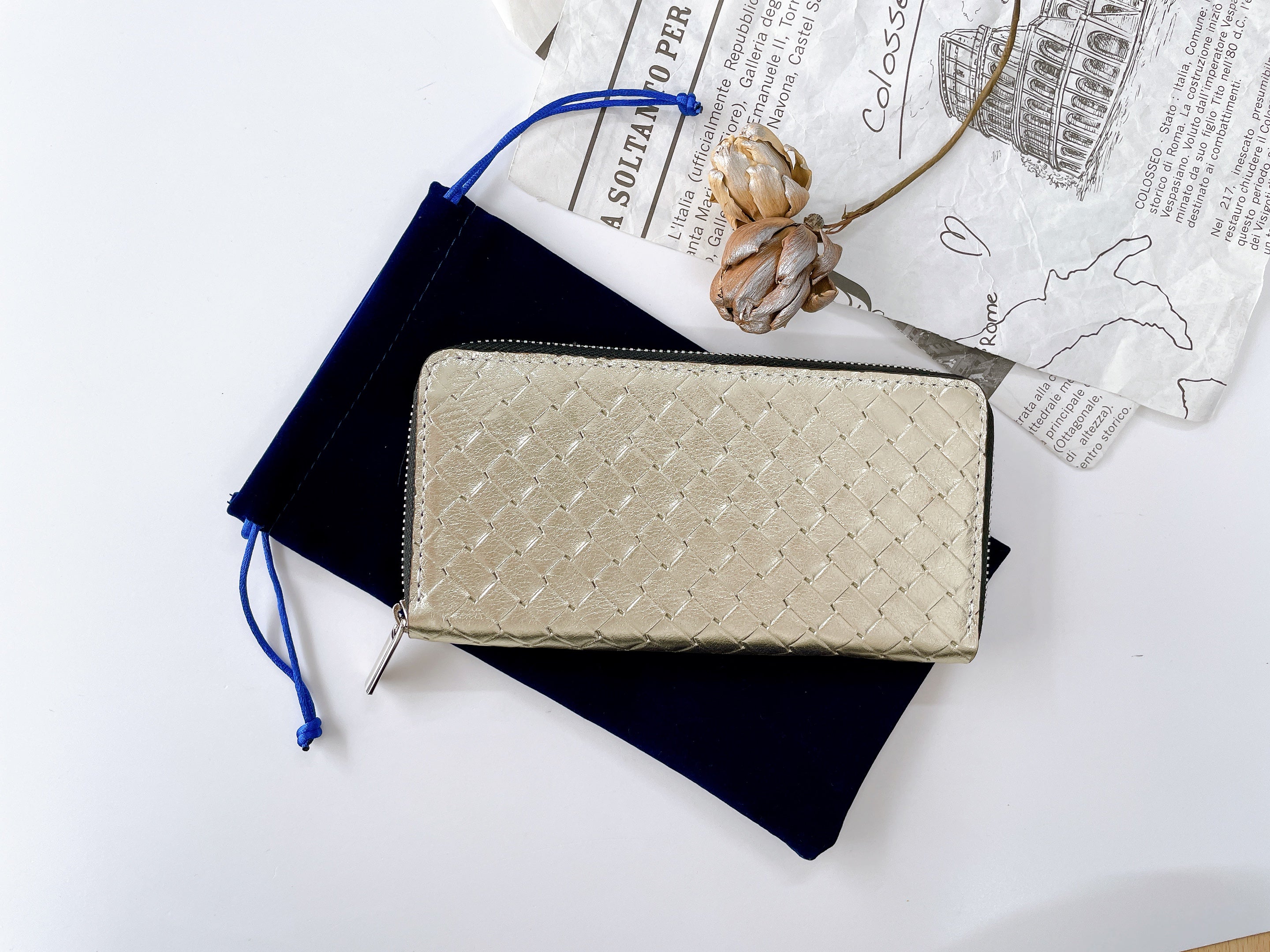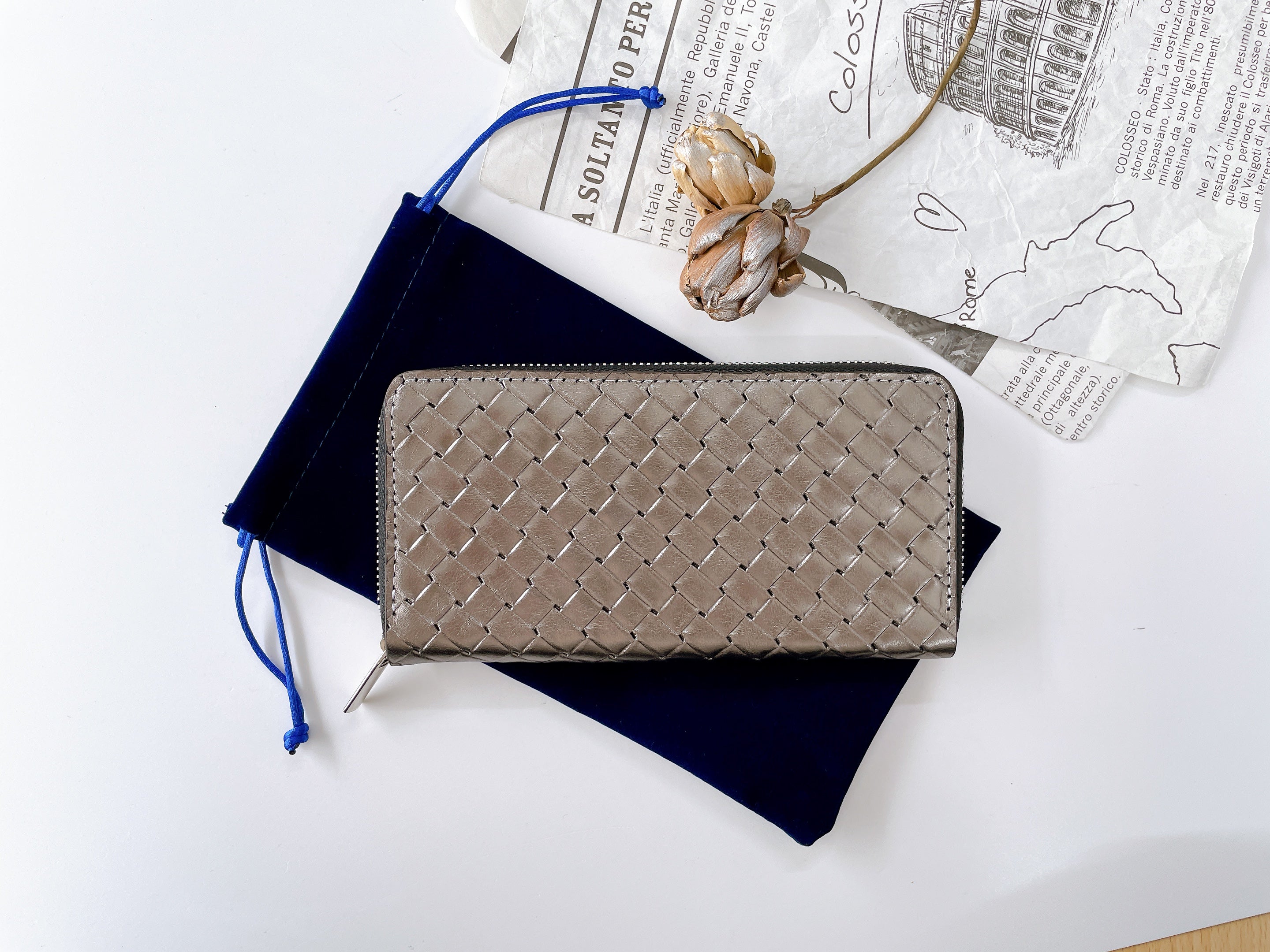 ◆ 本革 メタリック 編み込み風 長財布 ◆