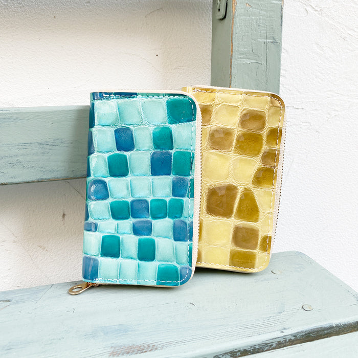 鮮やかな色合いのステンドグラスのような本革生地を使用。