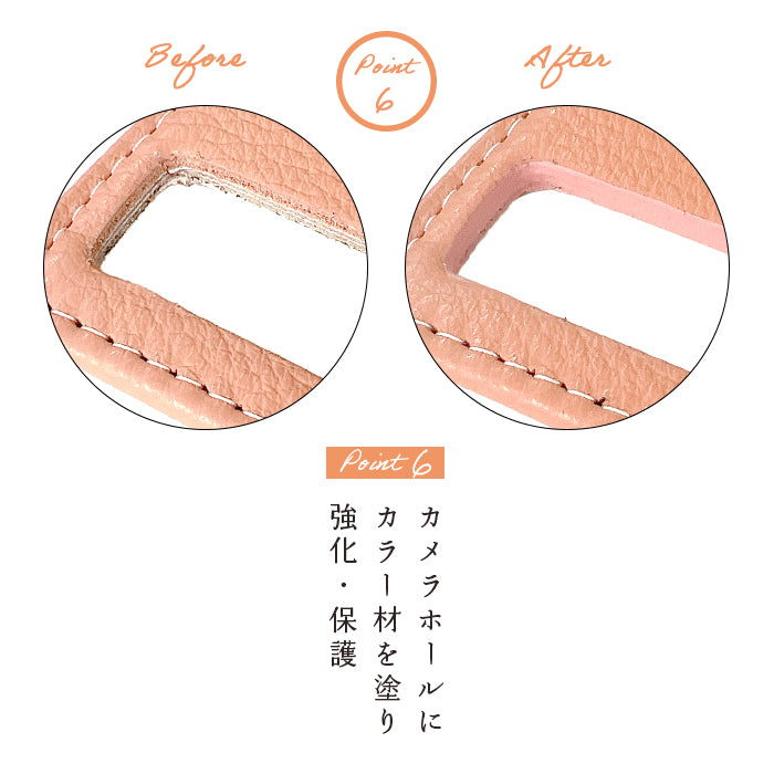内側のケースに合わせてカメラ穴・フラッシュ穴等を一点一点、手作りであけております!