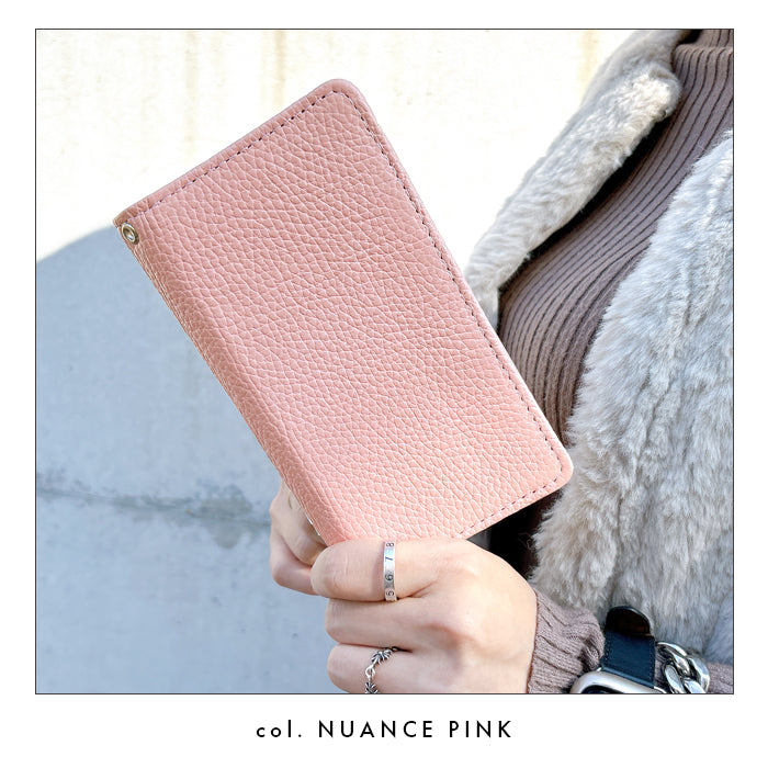 淡いニュアンスカラーはどんなシーンにもピッタリな手帳型ケースです。