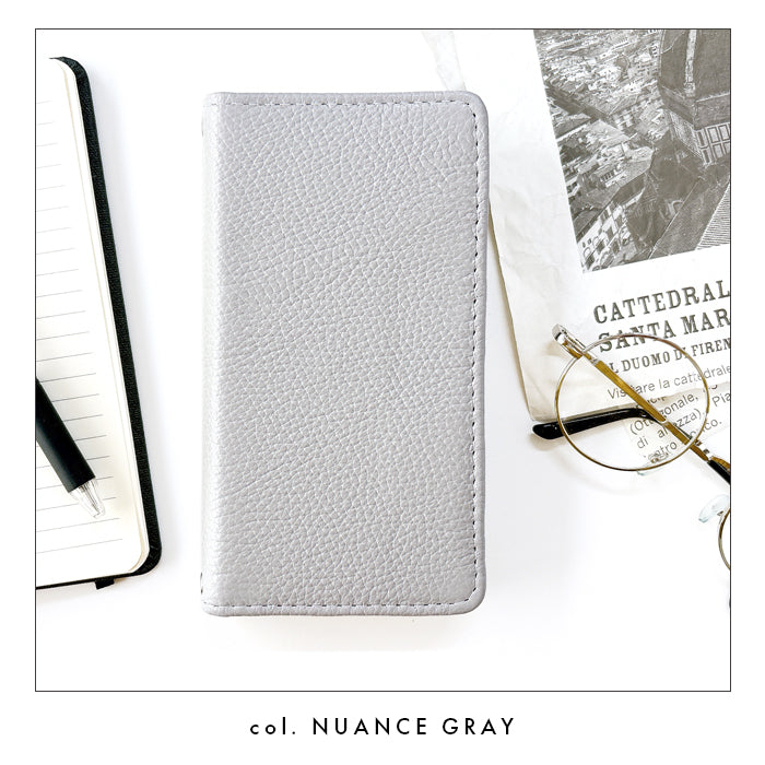 淡いニュアンスカラーはどんなシーンにもピッタリな手帳型ケースです。