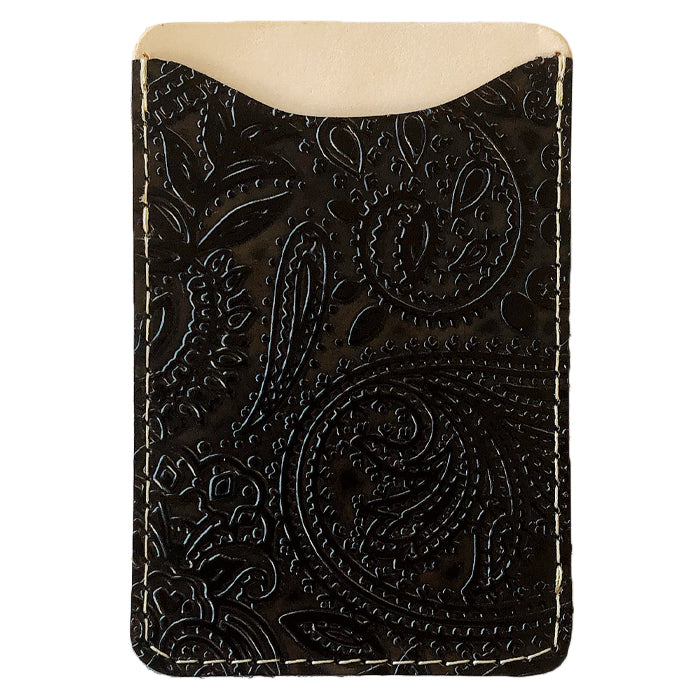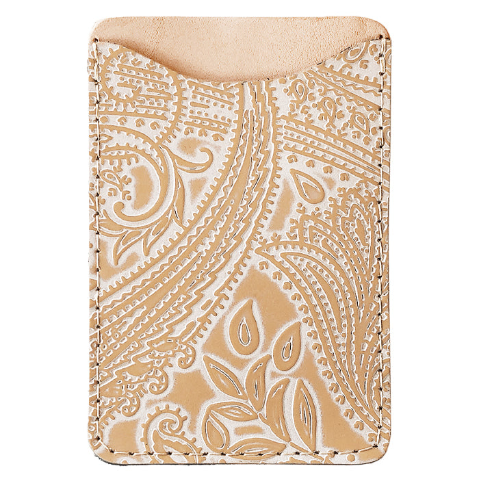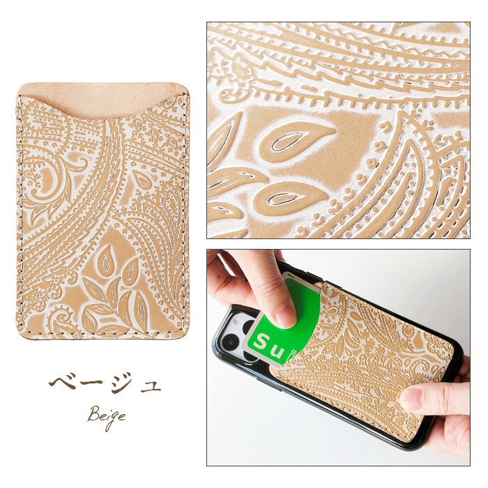 焦げワックスによるツートンを付けた型押しペイズリー柄の本革を使用しています。