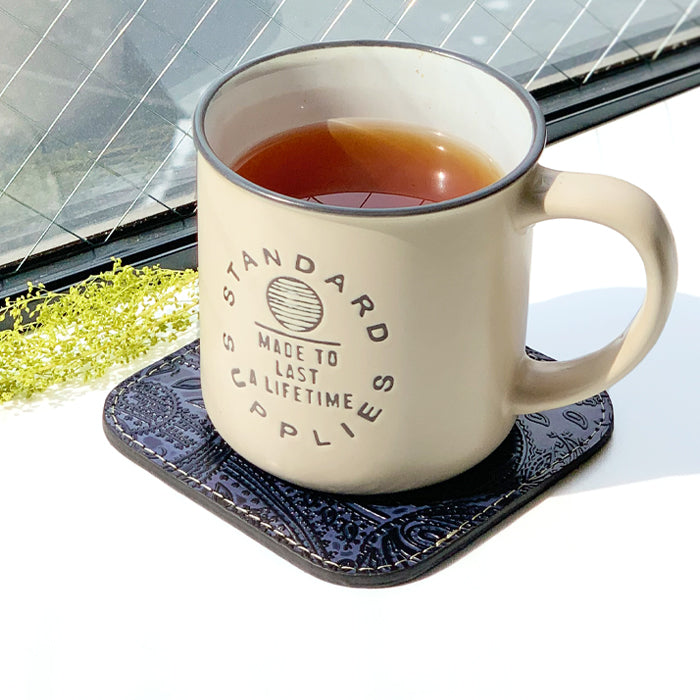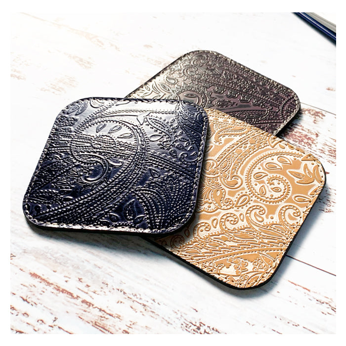 シックな色合いに艶感のある上質な生地が特徴のコースターです。