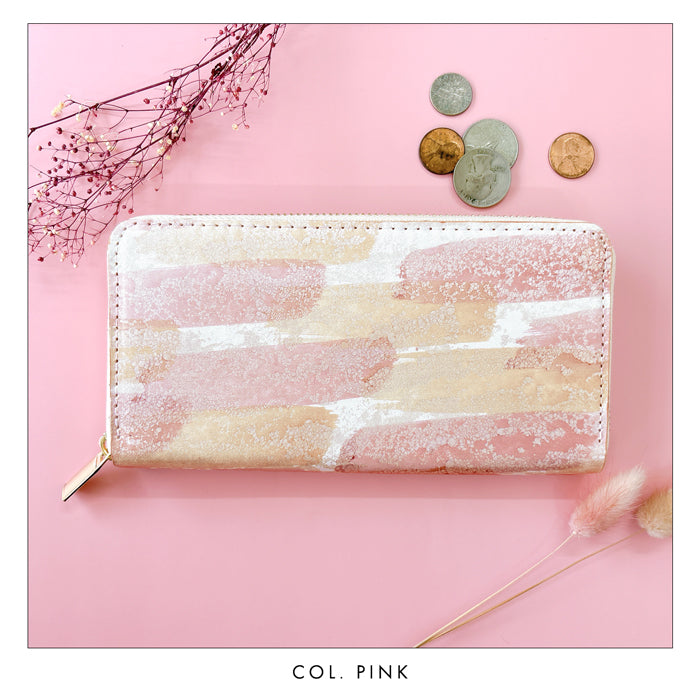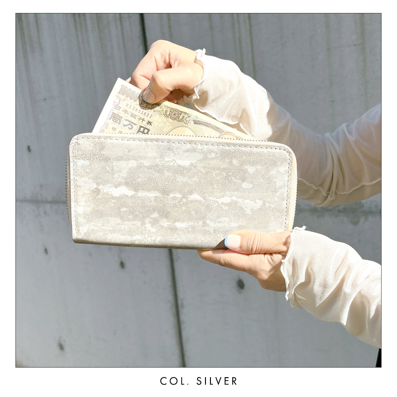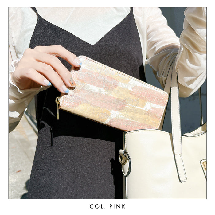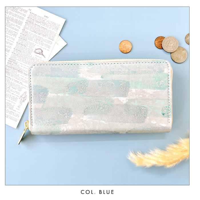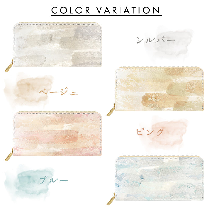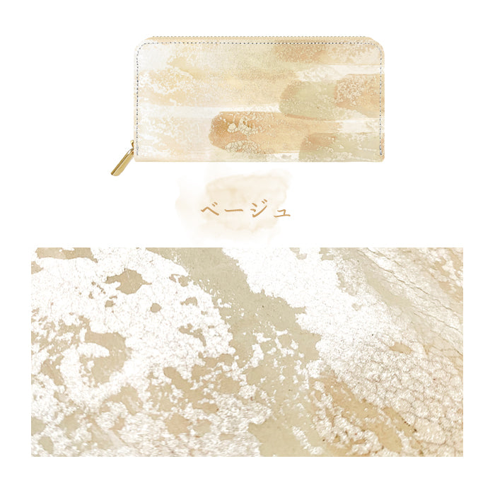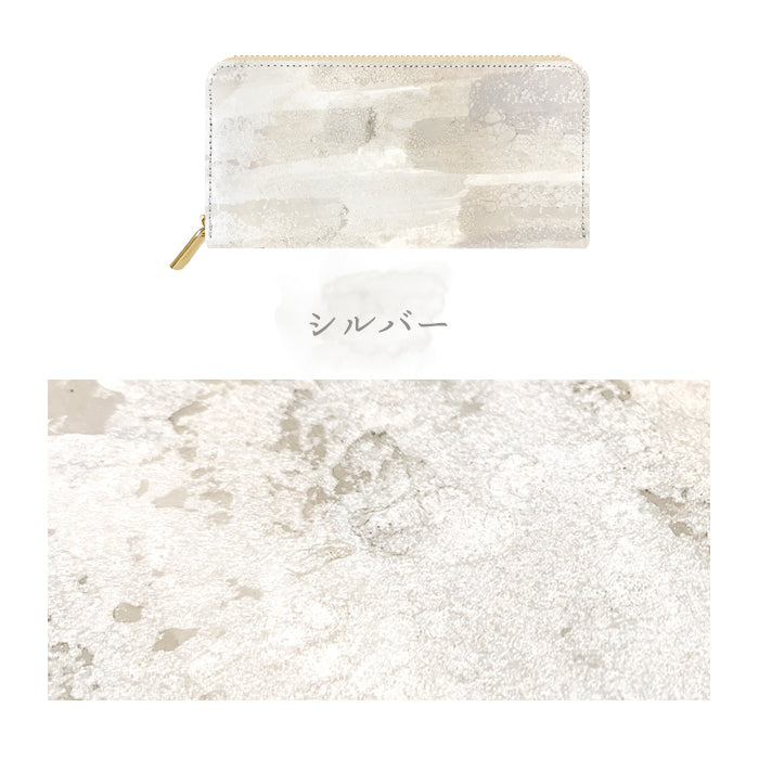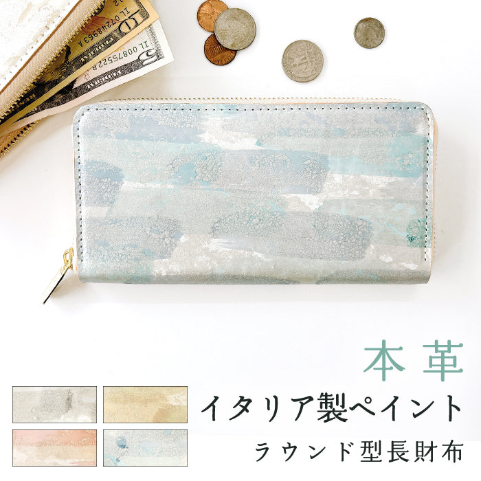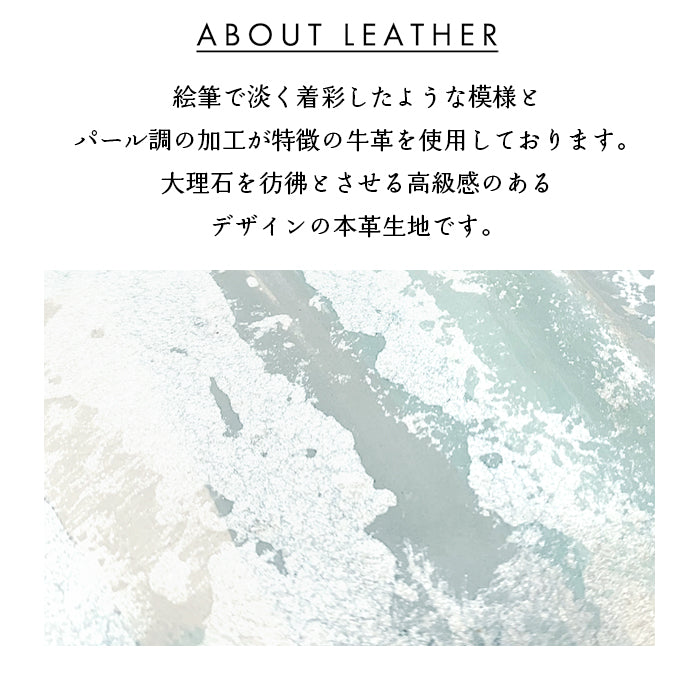 絵筆で淡く着彩したような模様とパール調の加工が特徴の牛革をしようしております。