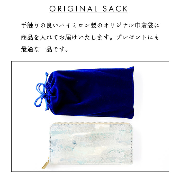 手触りの良いハイミロン製のオリジナル巾着袋に入れてお届けいたします。