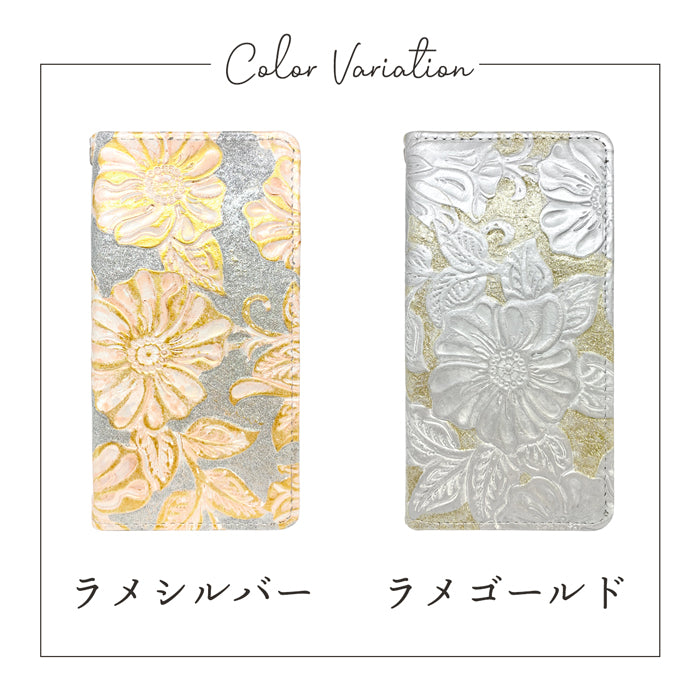 【 上品 エレガント フラワー アンティーク レトロ 型押し エンボス 高級 華やか 大人かわいい 可愛い オシャレ レディース シルバー ゴールド 二つ折り ハンドなし ベルトなし ケース カバー 手帳型 手帳型ケース 手帳型カバー スマホケース スマホカバー 】