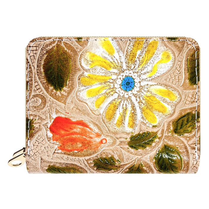 レトロな可愛い彩りで、手元を華やかに。 レトロチックな花とリーフモチーフに、顔料で一つ一つ丁寧に色付けされた本革を使用。 外見の可愛らしさだけでなく、機能面も充実。 |