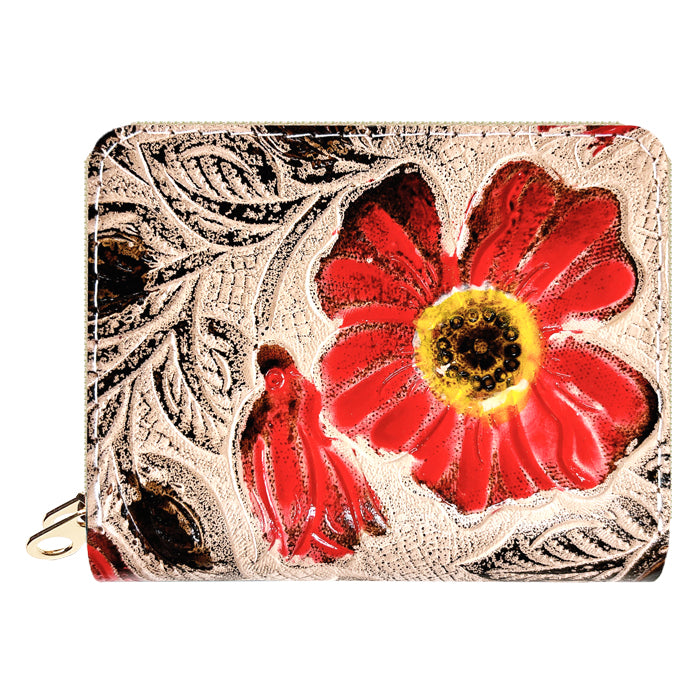 【Leo&Aoi公式ショップ】 レトロな花型押し 蛇腹 ダブルファスナー 財布 本革 レディース カード収納 ミニ財布 小さい財布 使いやすい 牛革 革財布 ラウンド型財布 【安心の返品保証付き】